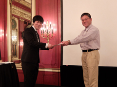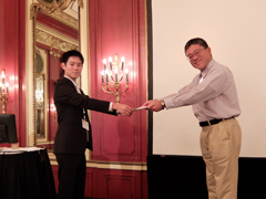 (贈賞) IROS2014の会場にて表彰を行い,表彰状および副賞を手渡します.