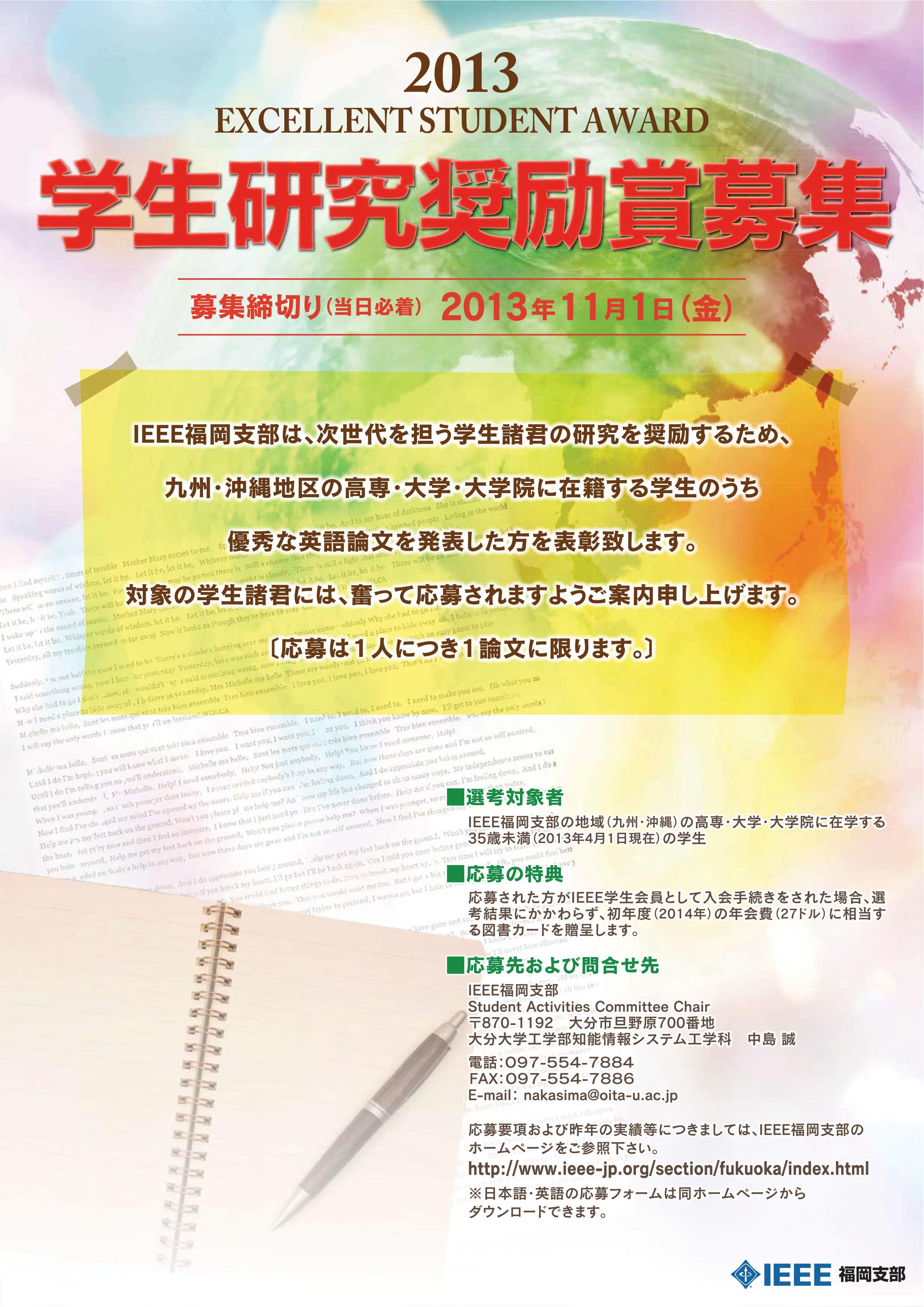 Information of application for Excellent Student Award of the IEEE Fukuoka Section 2013