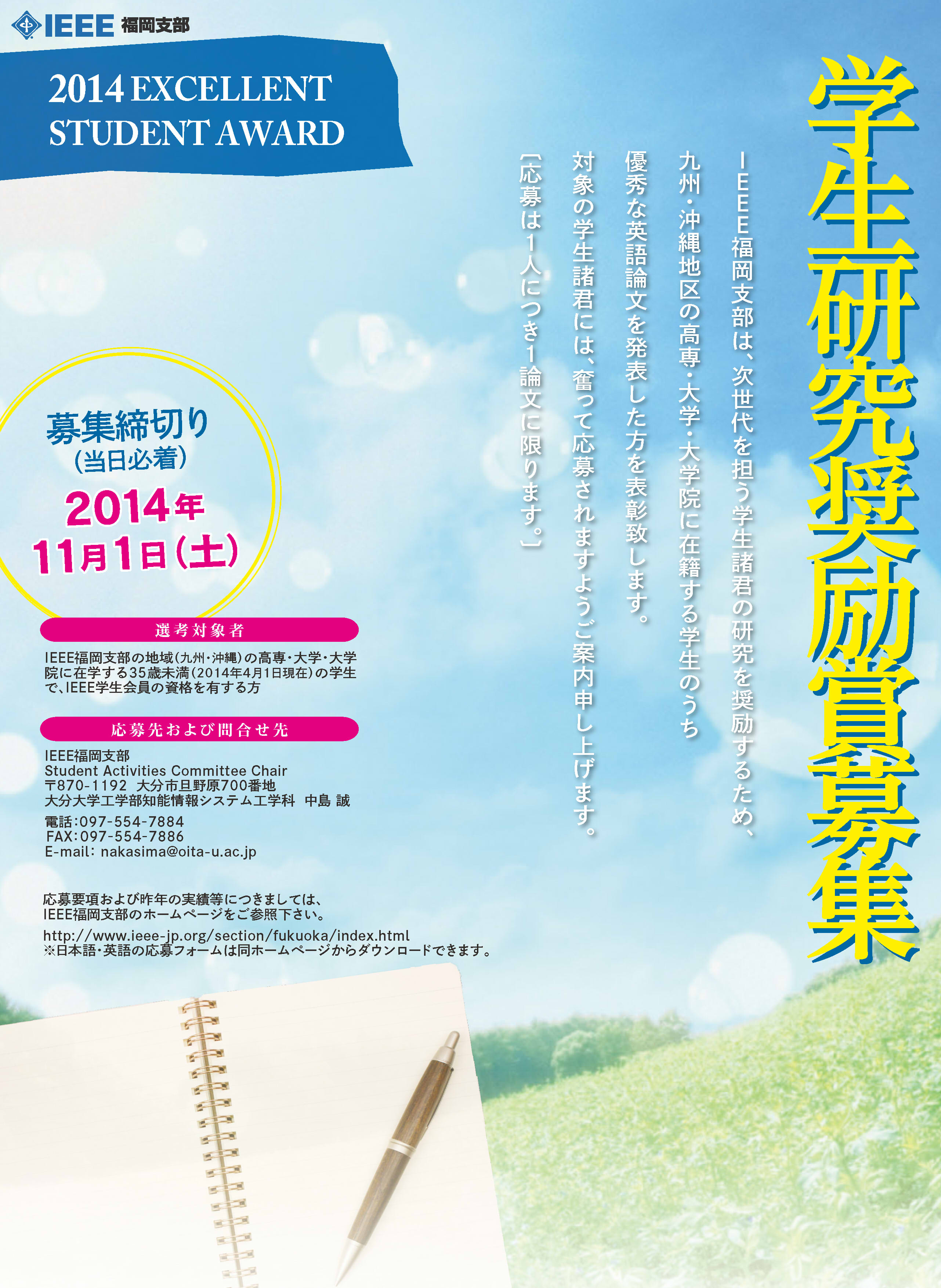Information of application for Excellent Student Award of the IEEE Fukuoka Section 2014