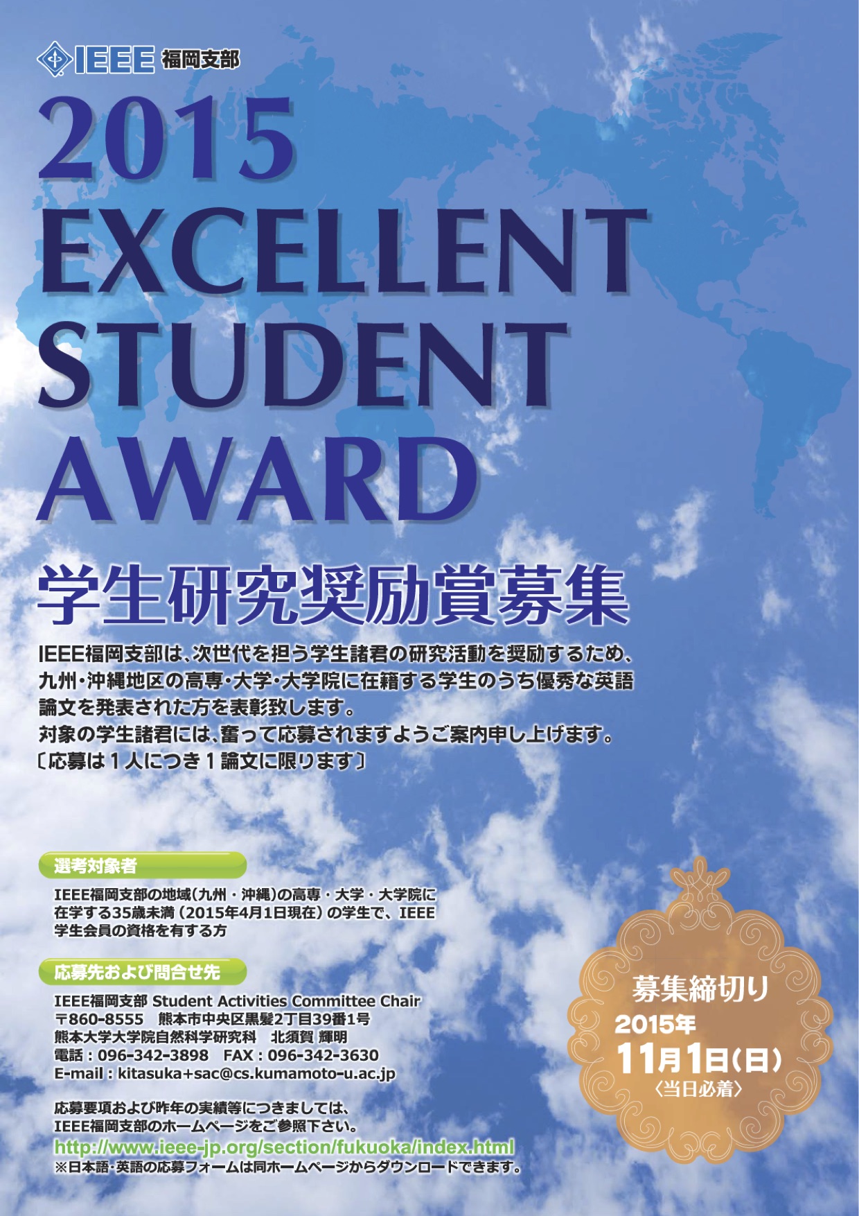 Information of application for Excellent Student Award of the IEEE Fukuoka Section 2015