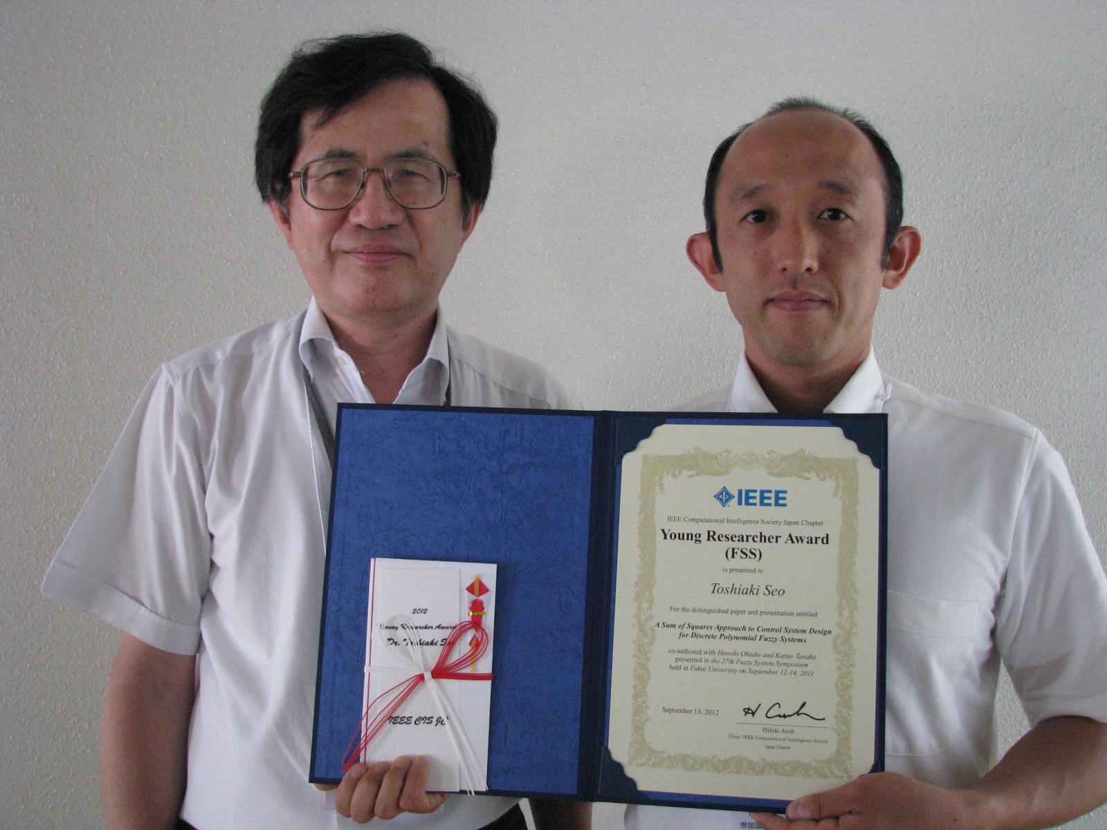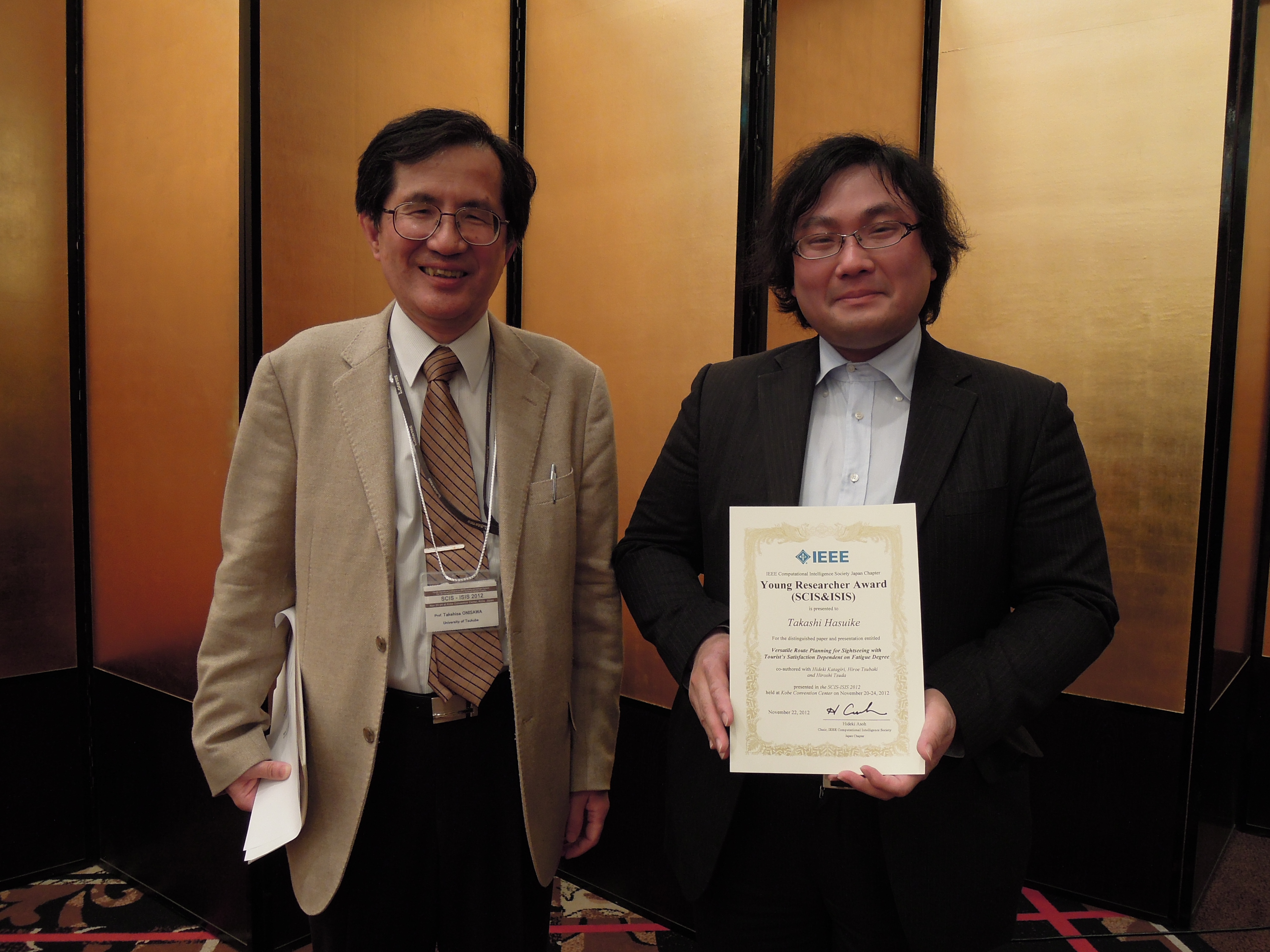 - 2012年11月20日~24日に開かれたSCISISIS2012での該当者から以下の2名が選ばれました。
