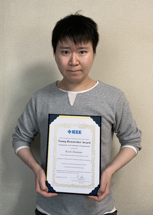 2021年受賞者 (Updated at 2023-06-02 (Fri) 20:43:53) †進化計算シンポジウム2021(EC2021) †進化計算シンポジウム2021での論文発表に対して選奨委員会により以下の2件をCISJ-YRAに選出し,表彰致しました. Tomohiro Harada (Tokyo Metropolitan University): Surrogate-assisted Evolutionary Algorithm Based on Pairwise Ranking Estimation †Ryoki Hamano (Yokohama National University):Reduction of Genetic Drift in Population-Based Incremental Learning via Entropy Regularization †第37回ファジィシステムシンポジウム(FSS2021) †FSS2020での論文発表に対して選奨委員会により以下の2件をCISJ-YRAに選出し,表彰致しました. 面﨑 祐一(大阪府立大学):マルチラベル識別問題におけるファジィ遺伝的機械学習の多目的最適化と多数目的最適化の比較 †福島 卓弥(大阪府立大学):ファジィ推論を用いたRobo Cupサッカーのチーム戦術分析 †ニューロコンピューティング(NC)研究会 †2020年3月から2021年1月までのNC研究会における該当発表者から2名の受賞者が選定されました.受賞者は下記の通りです. 髙嶺 潮 (琉球大): 深度勾配によるMulti-task learningとSelf multiple-inputを用いた教師あり単眼深度推定 †橋本 翼 (東京農工大): 熟練した投球における筋肉活動のエフォート依存変調 † |