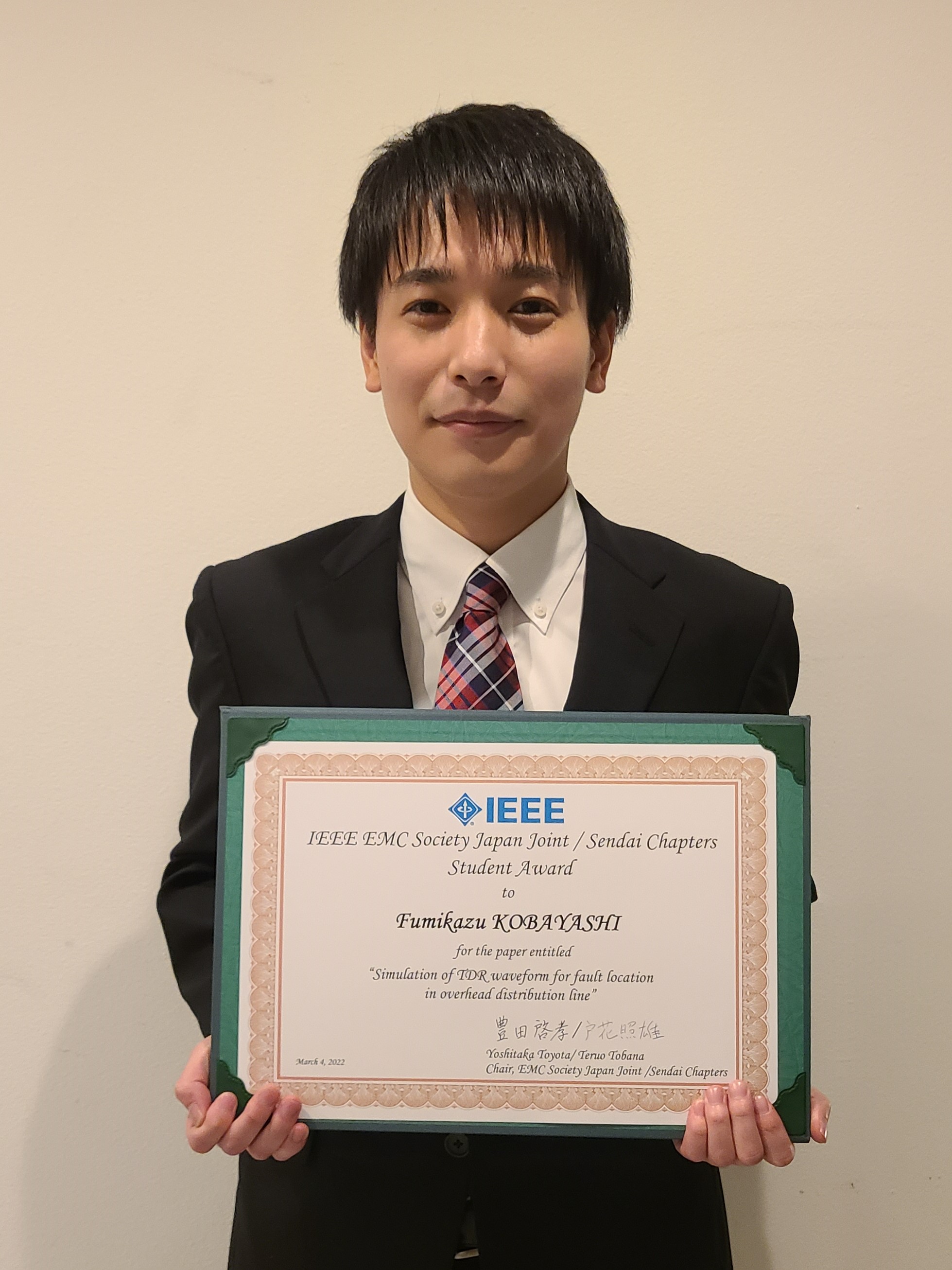 本年度は電子情報通信学会環境電磁工学研究会(IEICE EMCJ(オンライン開催))において、EMCJ若手優秀賞と共に IEEE EMC Society Japan Joint / Sendai Chapters Student Award の表彰を行いました。